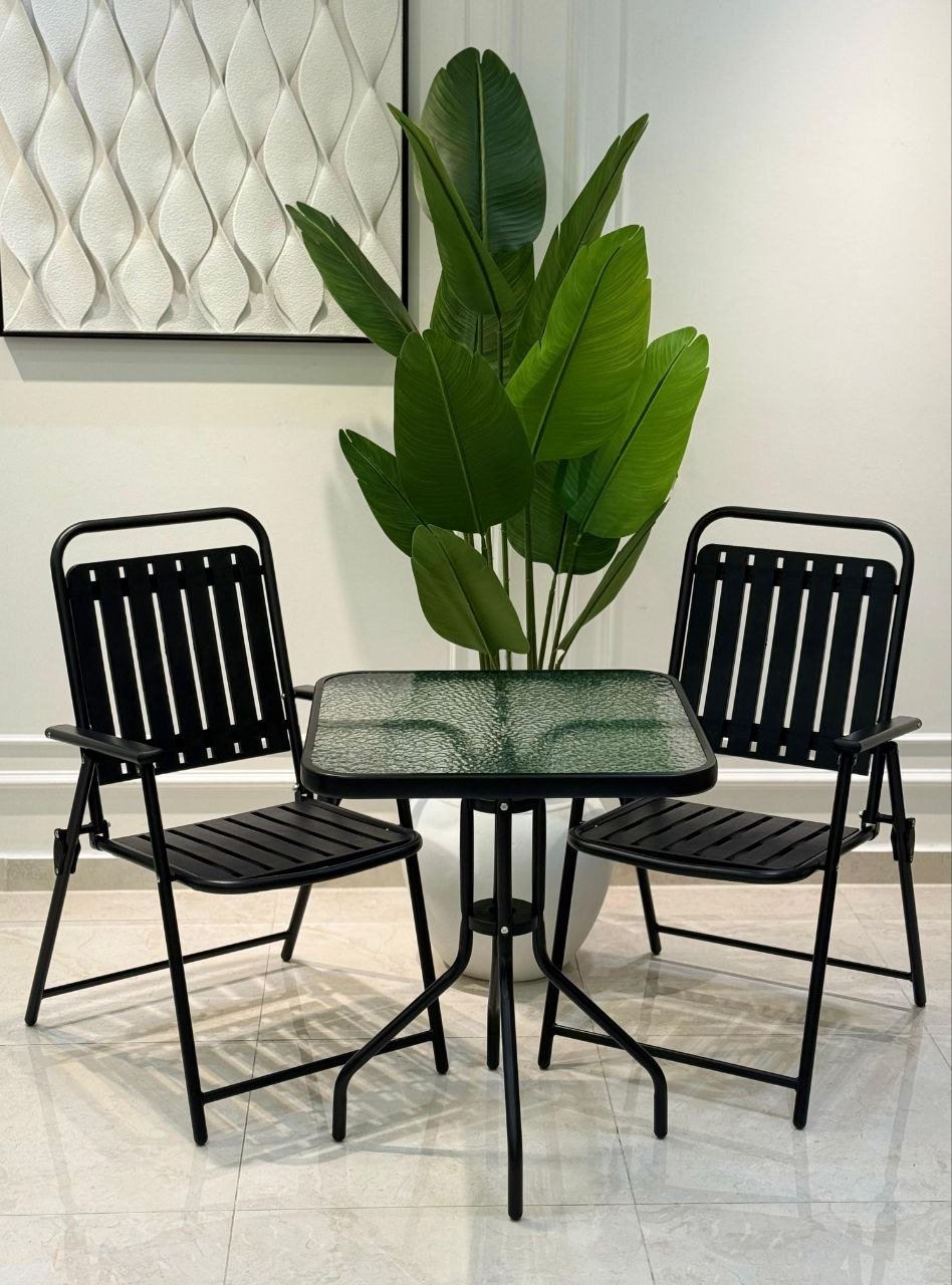 طقم قعدة حديد طاولة مع كرسيين
