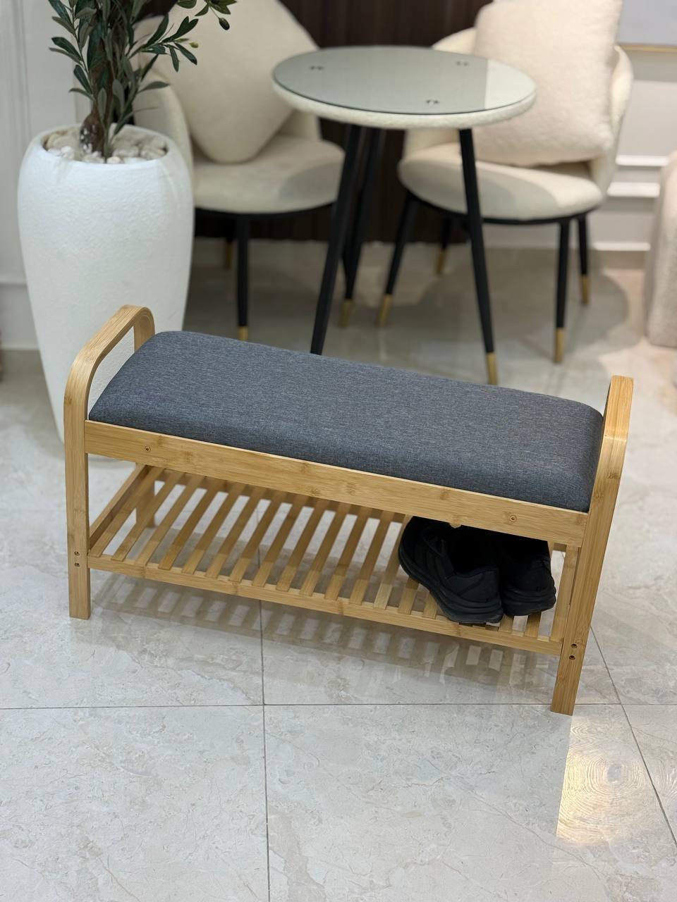 مقعد مع رف خشب بامبو